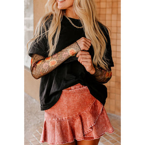 Faux Two Piece Floral Long Sleeve Patchwork Top