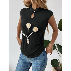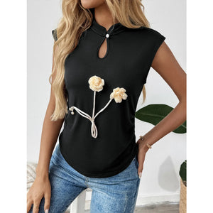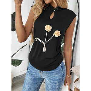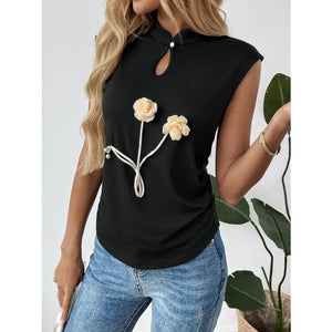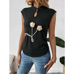 Floral Applique Keyhole Sleeveless Top