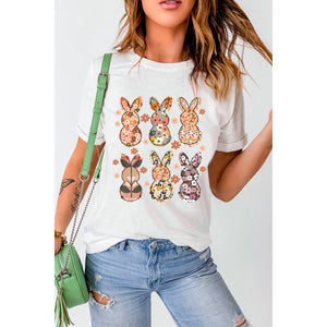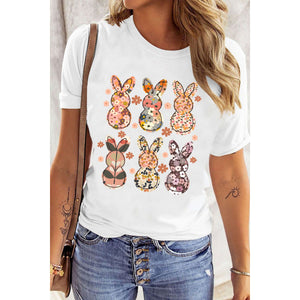 Floral Bunny Graphic Crewneck Short Sleeve T-Shirt