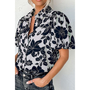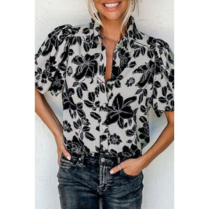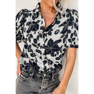 Floral Button Down Puff Sleeve Shirt