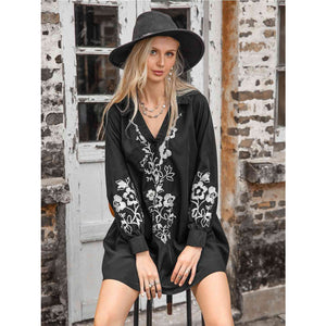 Floral Collared Neck Long Sleeve Dress