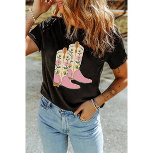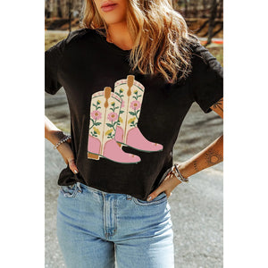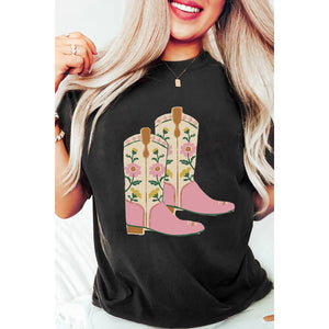 Floral Cowgirl Boots Graphic T-Shirt