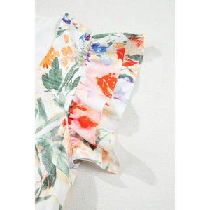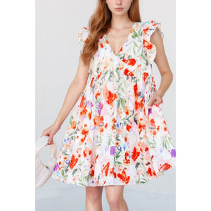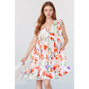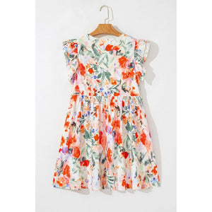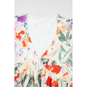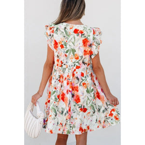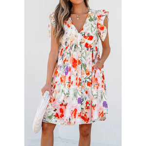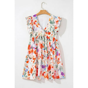 Floral Double Ruffle Sleeve V Neck Mini Dress
