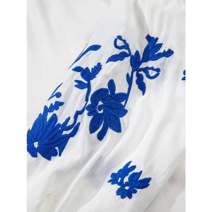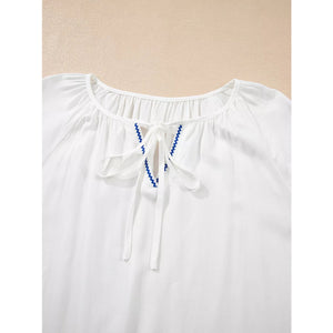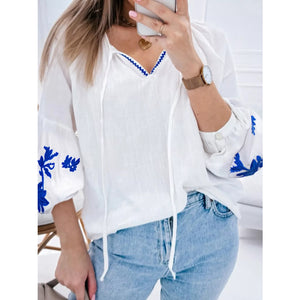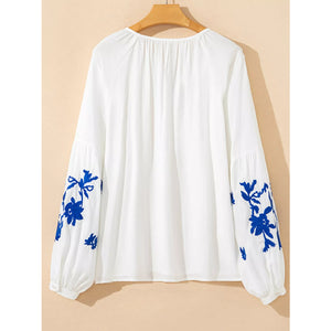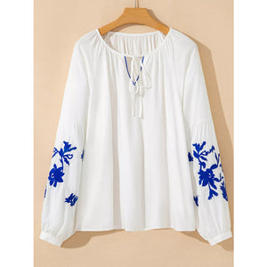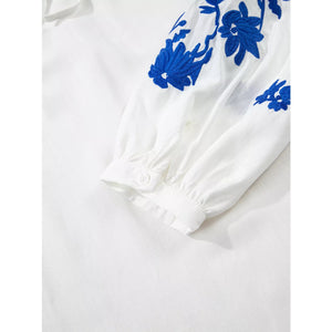 Floral Embroidered Tie Neck Blouse