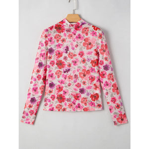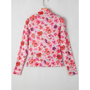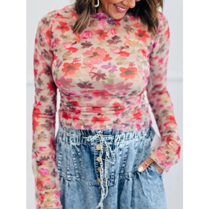 Floral Mesh Long Sleeve Fitted Blouse