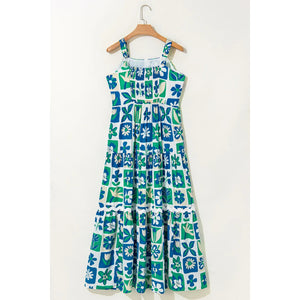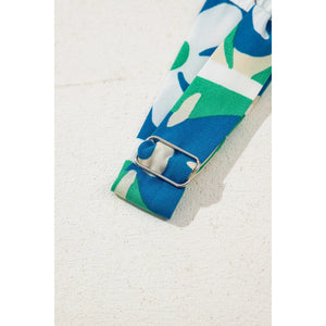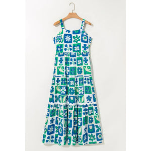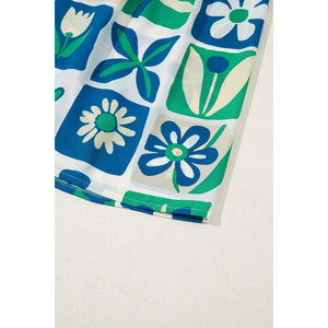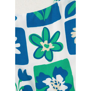 Floral Mixed Pattern Ruffle Flutter Sleeve Buttoned Dress