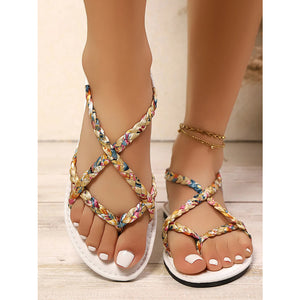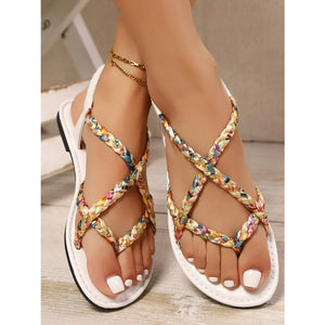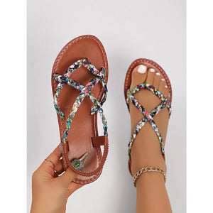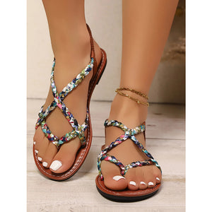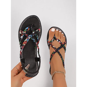 Floral Print Strappy Flat Sandals