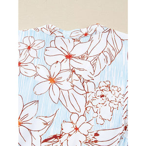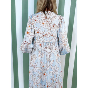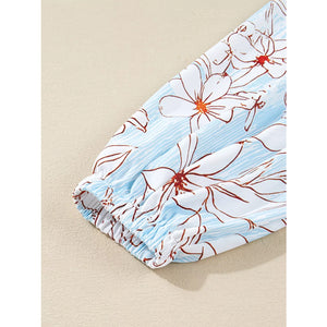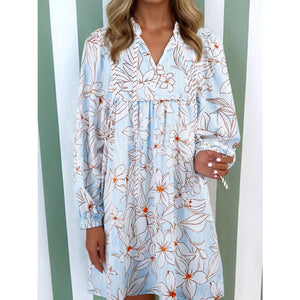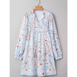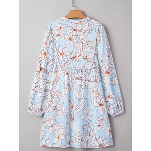 Floral Print Tie Neck Long Sleeve Mini Dress