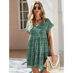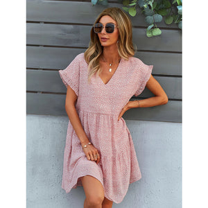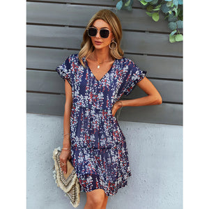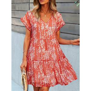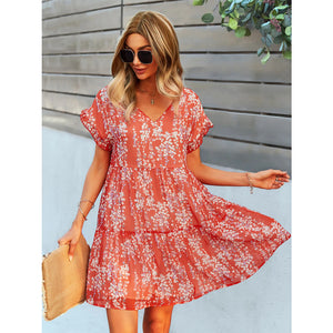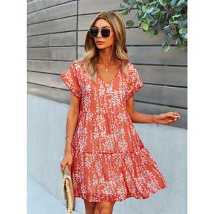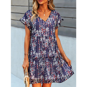 Floral Print V-Neck Ruffle Tiered Summer Mini Dress