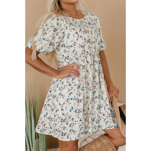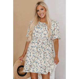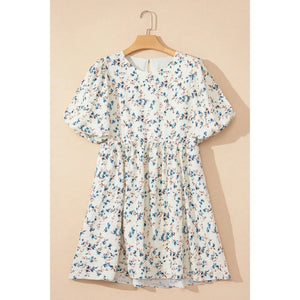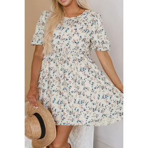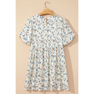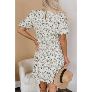 Floral Puff Short Sleeve Empire Waist Mini Dress