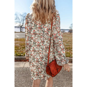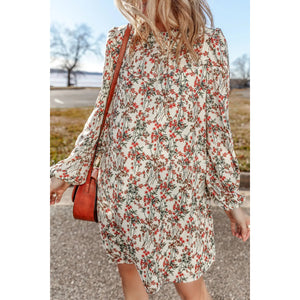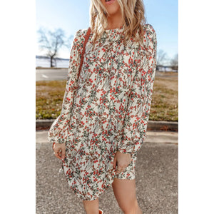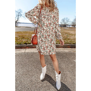 Floral Round Neck Long Sleeve Mini Dress
