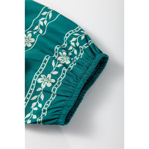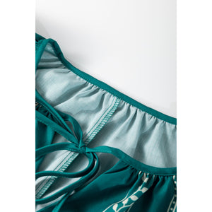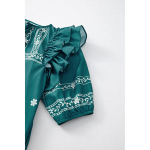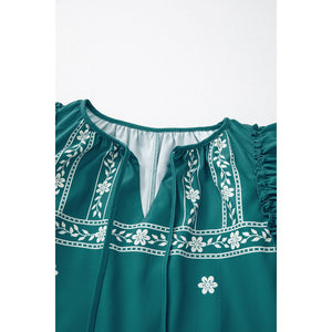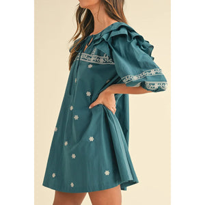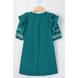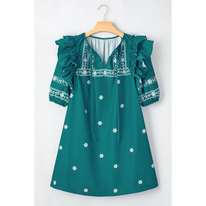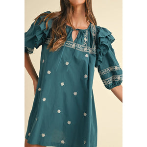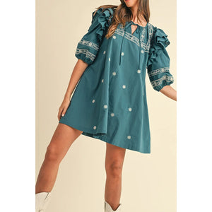 Floral Ruffle Puff Sleeve Tie Neck Mini Dress