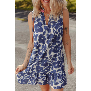 Floral Sleeveless Color Block Notched V Neck Mini Dress