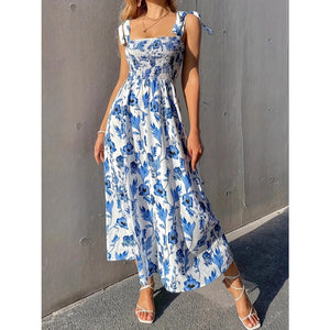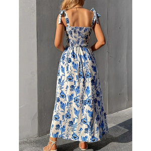 Floral Smocked Midi Dress with Tie Shoulders