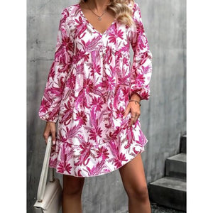 Floral V-Neck Balloon Sleeve Dress