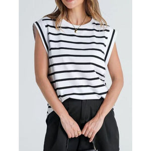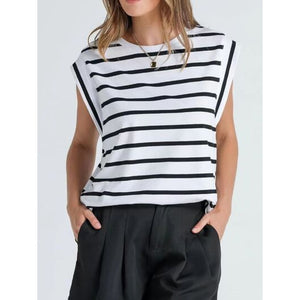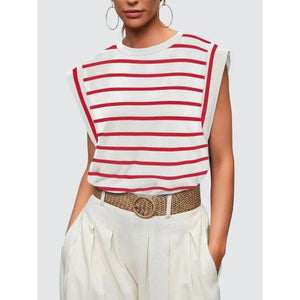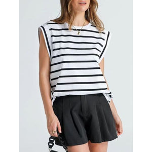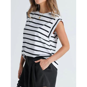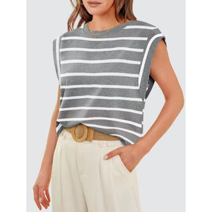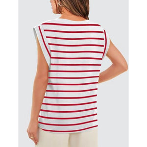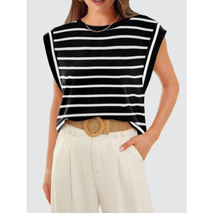 Florira Striped Round Neck Cap Sleeve T-Shirt