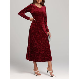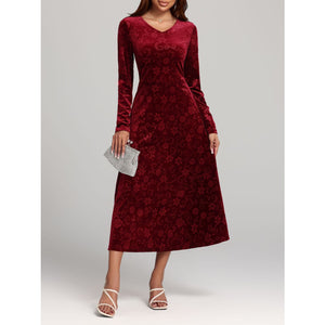 Flower Print V-Neck Long Sleeve Midi Dress