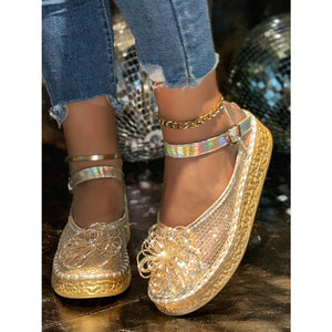 Flower Round Toe Platform Slip-Ons