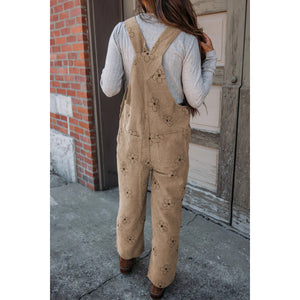 Flower Wide Strap Overalls with Pockets