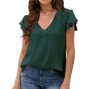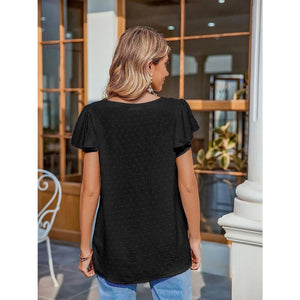 Flutter Sleeve V-neck Casual Blouse