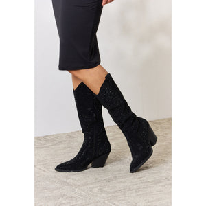 These boots are the epitome of statement footwear, designed to turn heads and steal the show wherever you go. With a knee-high silhouette and an abundance of rhinestone embellishments, they exude a dazzling, unique allure that's perfect for special occasions or elevating your everyday style.