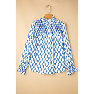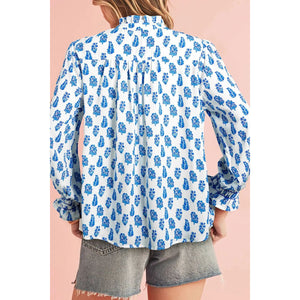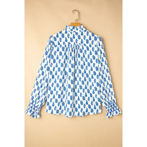 Frill Printed Button Up Long Sleeve Shirt