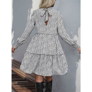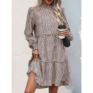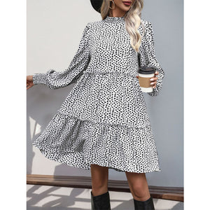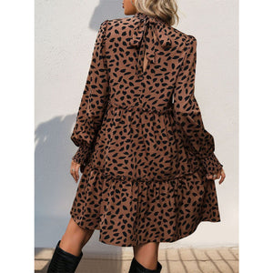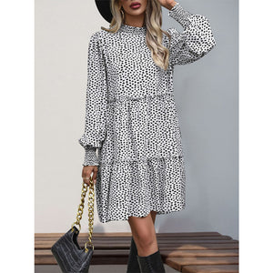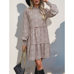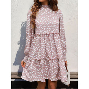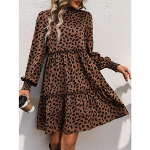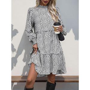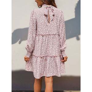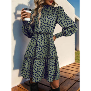 Frill Printed Mock Neck Long Sleeve Mini Dress