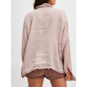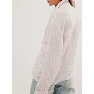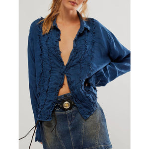 Frill Ruched Collared Neck Long Sleeve Shirt
