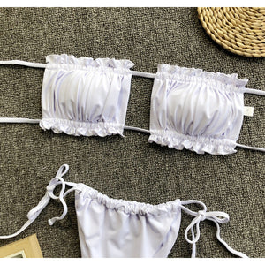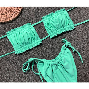 Frill Trim Ruched Bikini Set