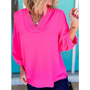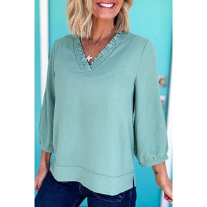 Frill Trim V-Neck Blouse