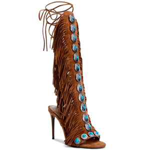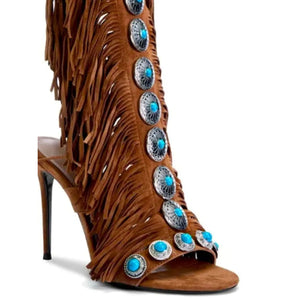 Fringe Lace Up High Heel Sandal