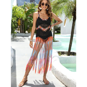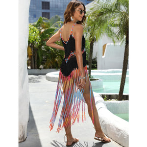 Fringe Scoop Neck Spaghetti Strap Cover-Up