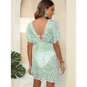 Full Size Boho Print Surplice Beach Cover Up Dress Plus Size