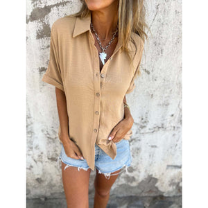 Full Size Button Down Short Sleeve Shirt Plus Size