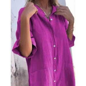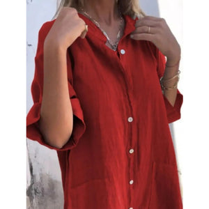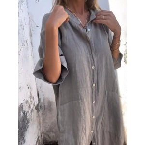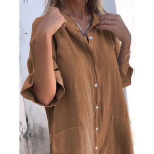 Full Size Casual Linen Button-Down Shirt Dress Plus Size