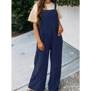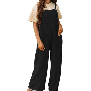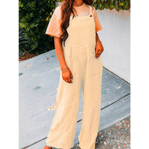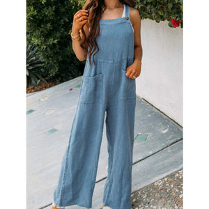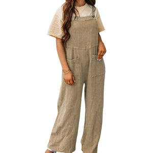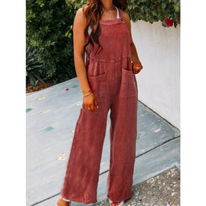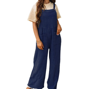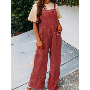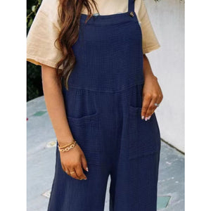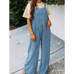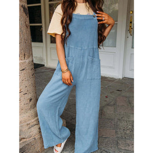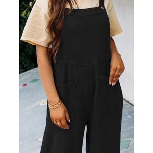 Full Size Casual Wide Leg Textured Overalls Plus Size