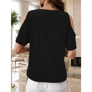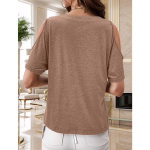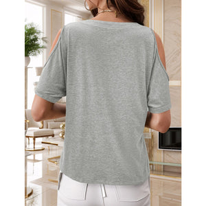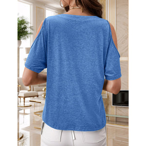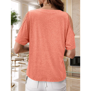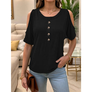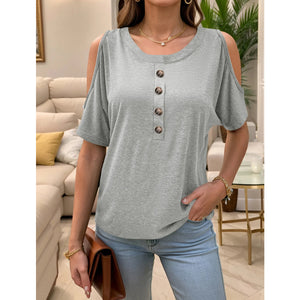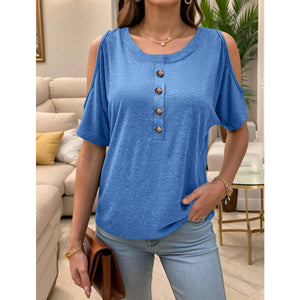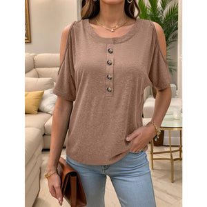Full Size Cold Shoulder Button Front T-Shirt Plus Size