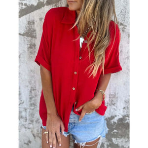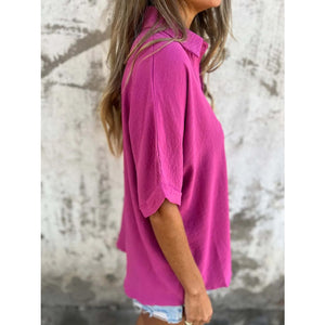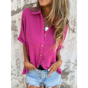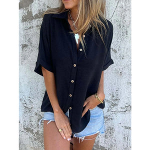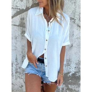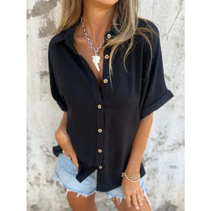 Full Size Collared Neck Half Sleeve Shirt Plus Size
