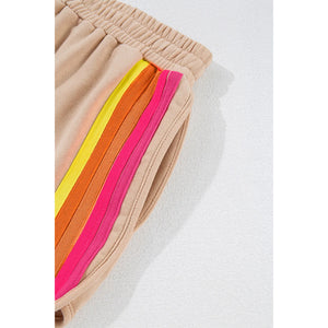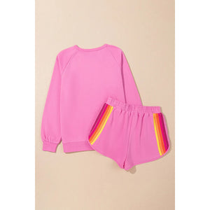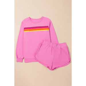Full Size Contrast Striped Round Neck Top and Shorts Set