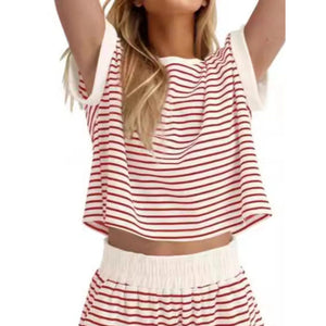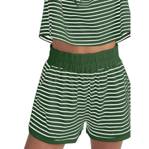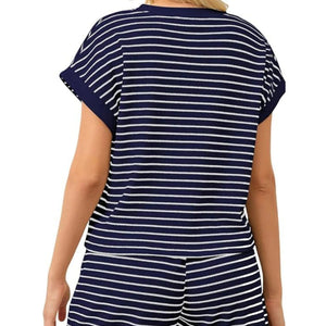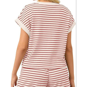 Full Size Contrast Striped T-Shirt and Shorts Set Plus Size