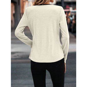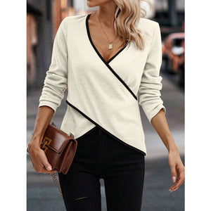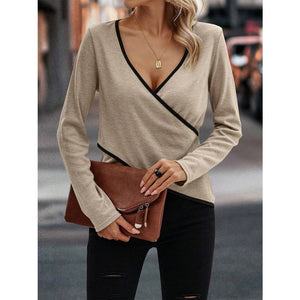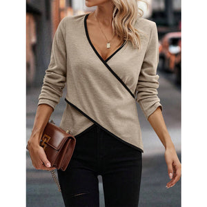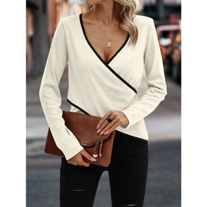 Full Size Crisscross Contrast Trim Long Sleeve T-Shirt
