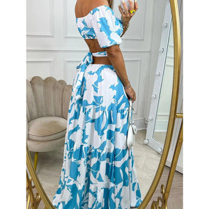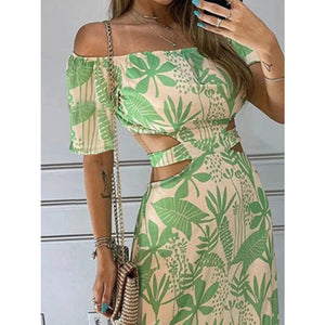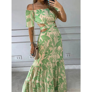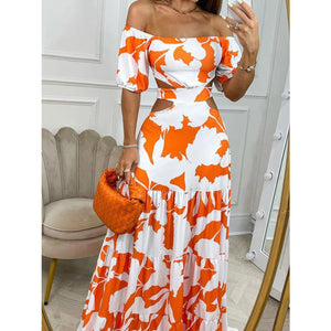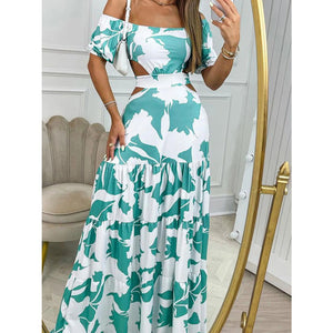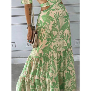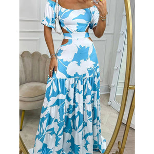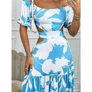 Full Size Cutout Off-Shoulder Printed Maxi Dress Plus Size