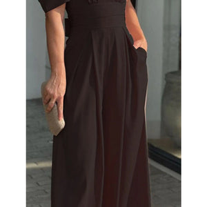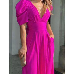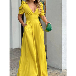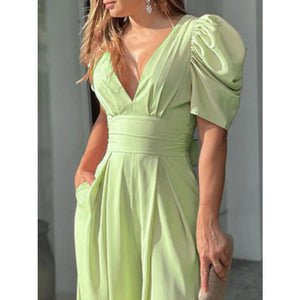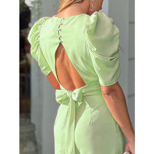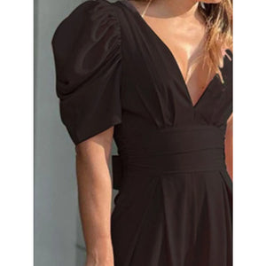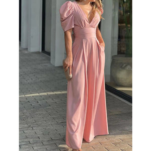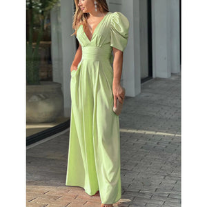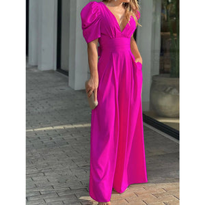 Full Size Cutout V-Neck Puff Sleeve Jumpsuit Plus Size
