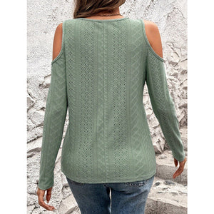 Full Size Eyelet V-Neck Cold Shoulder T-Shirt