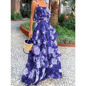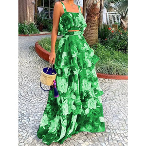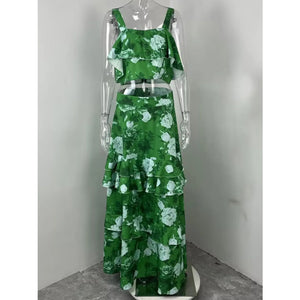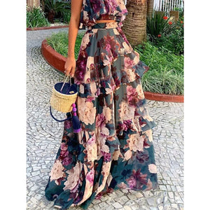 Full Size Floral Cami and Layered Skirt Set Plus Size