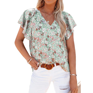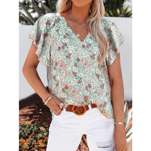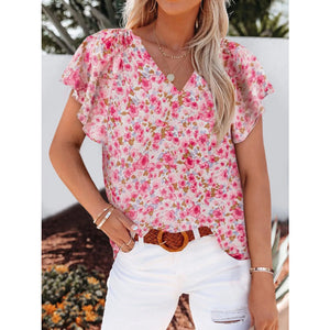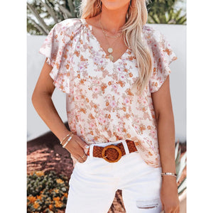 Full Size Flutter Sleeve Floral V-Neck Blouse Plus Size