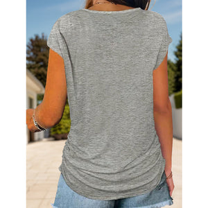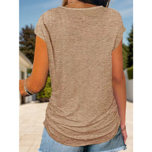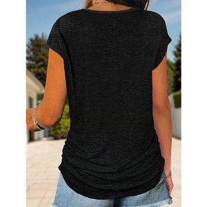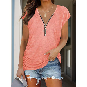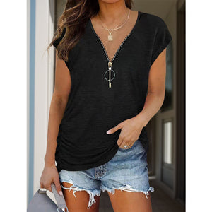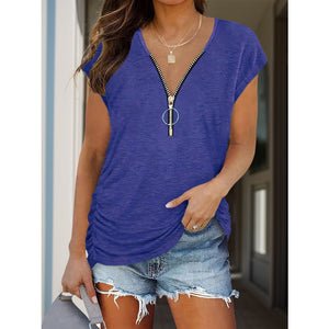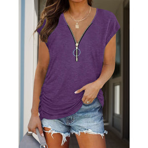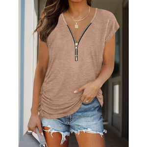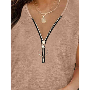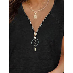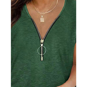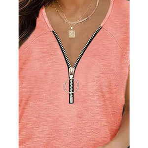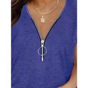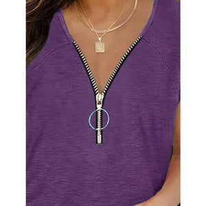 Full Size Half Zip Cap Sleeve T-Shirt