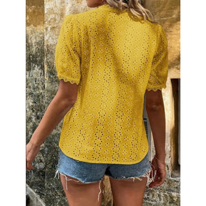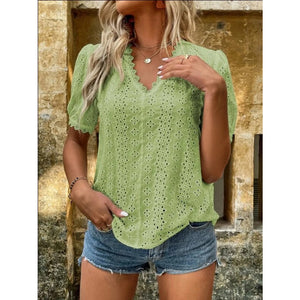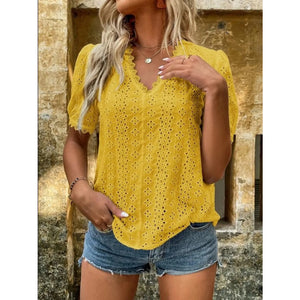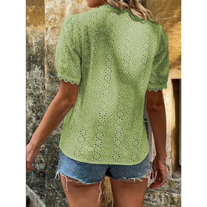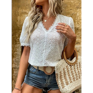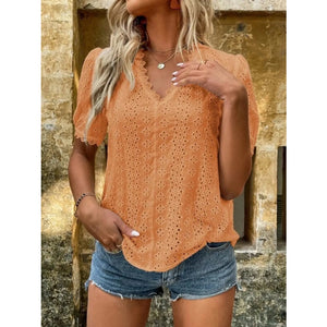 Full Size Lace Detail Eyelet V-Neck Short Sleeve Blouse Plus Size