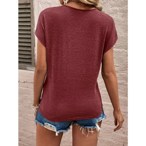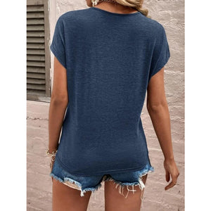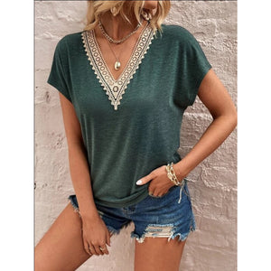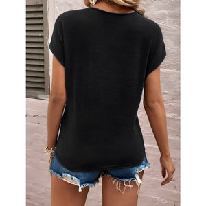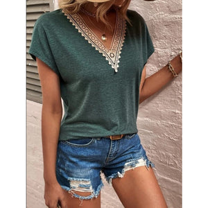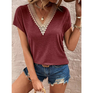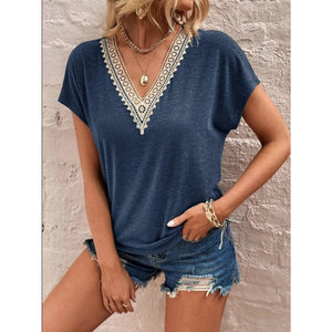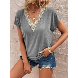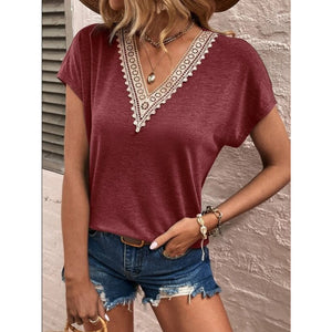 Full Size Lace Detail V-Neck Short Sleeve T-Shirt