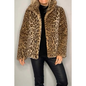 Full Size Leopard Furry Collared Neck Long Sleeve Coat